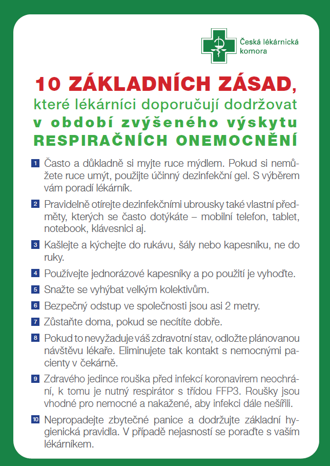 10 základních zásad, které lékárníci doporučují dodržovat v období zvýšeného výskytu RESPIRAČNÍCH ONEMOCNĚNÍ
