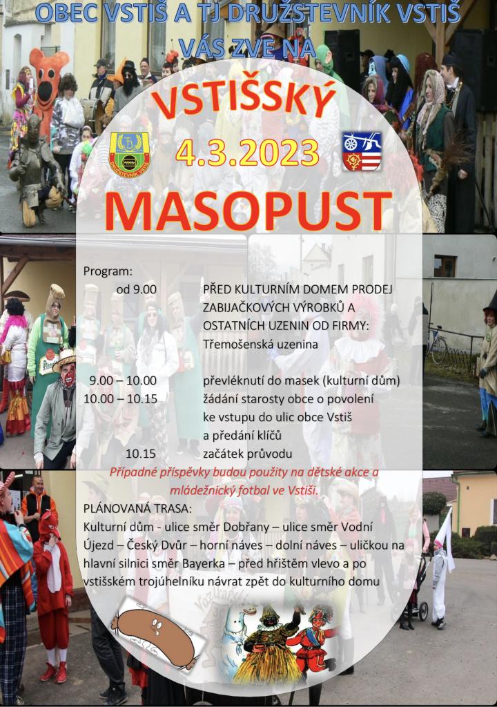 Obec Vstiš a TJ Družstevník Vstiš vás zve na Vtišský Masopust.