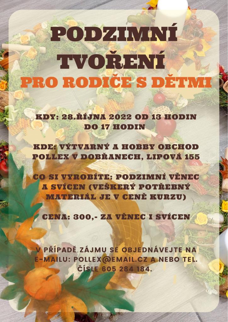 Pozvánka pro děti a rodiče na vyrábění věnců a svícnů o svátku 28.10.2022 v Dobřanech (v obchodě s výtvarnými potřebami Pollex).